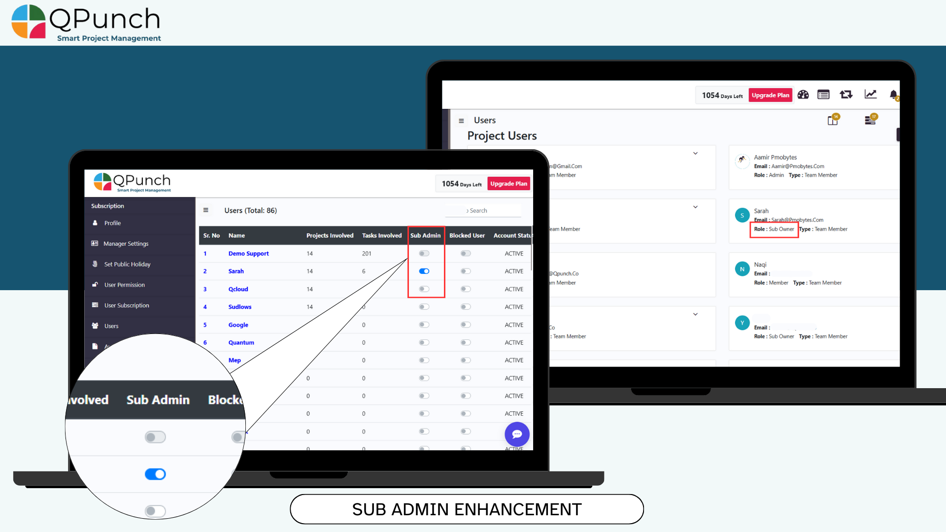 QPunch now supports multiple administrators per subscription, allowing Subscription Owners to assign up to three Sub Admins by enabling the Sub Admin toggle in the Subscription User settings. Sub Admins have the same permissions as the Subscription Owner for managing subscription-level users and settings, except for upgrading or changing the subscription plan. This enhancement enables secure delegation of administrative responsibilities, reduces reliance on a single owner, and ensures continuity in subscription management while maintaining full control over billing and plan upgrades.