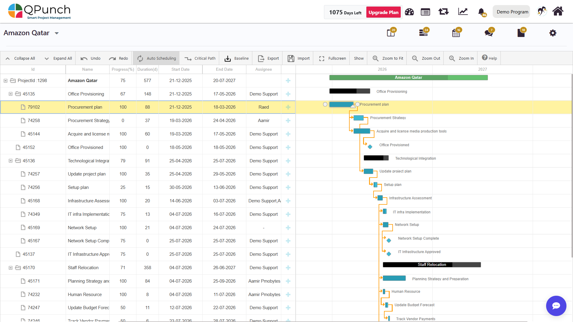 1. Waterfall: QPunch supports Waterfall projects by providing Gantt charts, milestones, dependencies, and reporting designed for governance and compliance, enabling teams to plan, execute, and monitor projects with clarity and control.